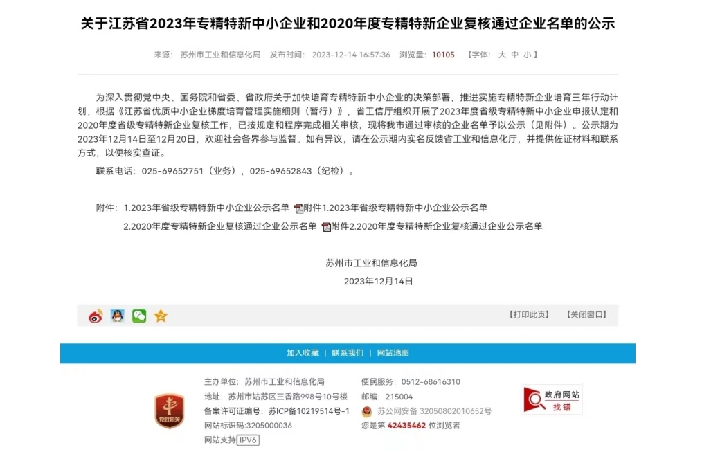 恭喜蘇州博睿通過江蘇省專精特新企業認定